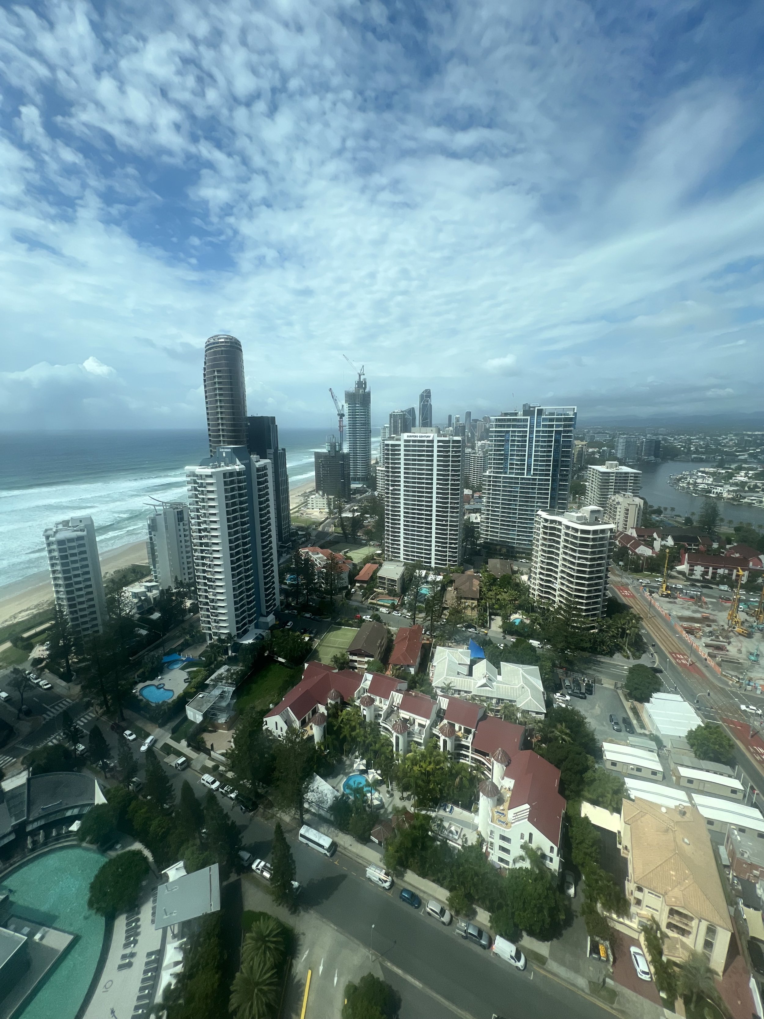 We finally arrived at the Gold Coast, Australia's surfing capital. I like to joke that we "suffered hard" on this trip, or we were "forced" to fly first class and had to stay on the 28th floor of a 65-story high-rise overlooking the beach in 80-degree weather!